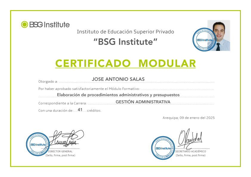 IES BSG Institute Licenciado por Resolución Ministerial N° 702-2018-MINEDU Lima 19 dic 2018